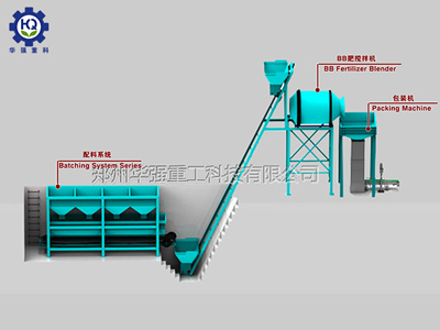 該生產(chǎn)線主要由配料系統(tǒng),皮帶輸送機(jī),BB肥攪拌機(jī),包裝機(jī)組成。